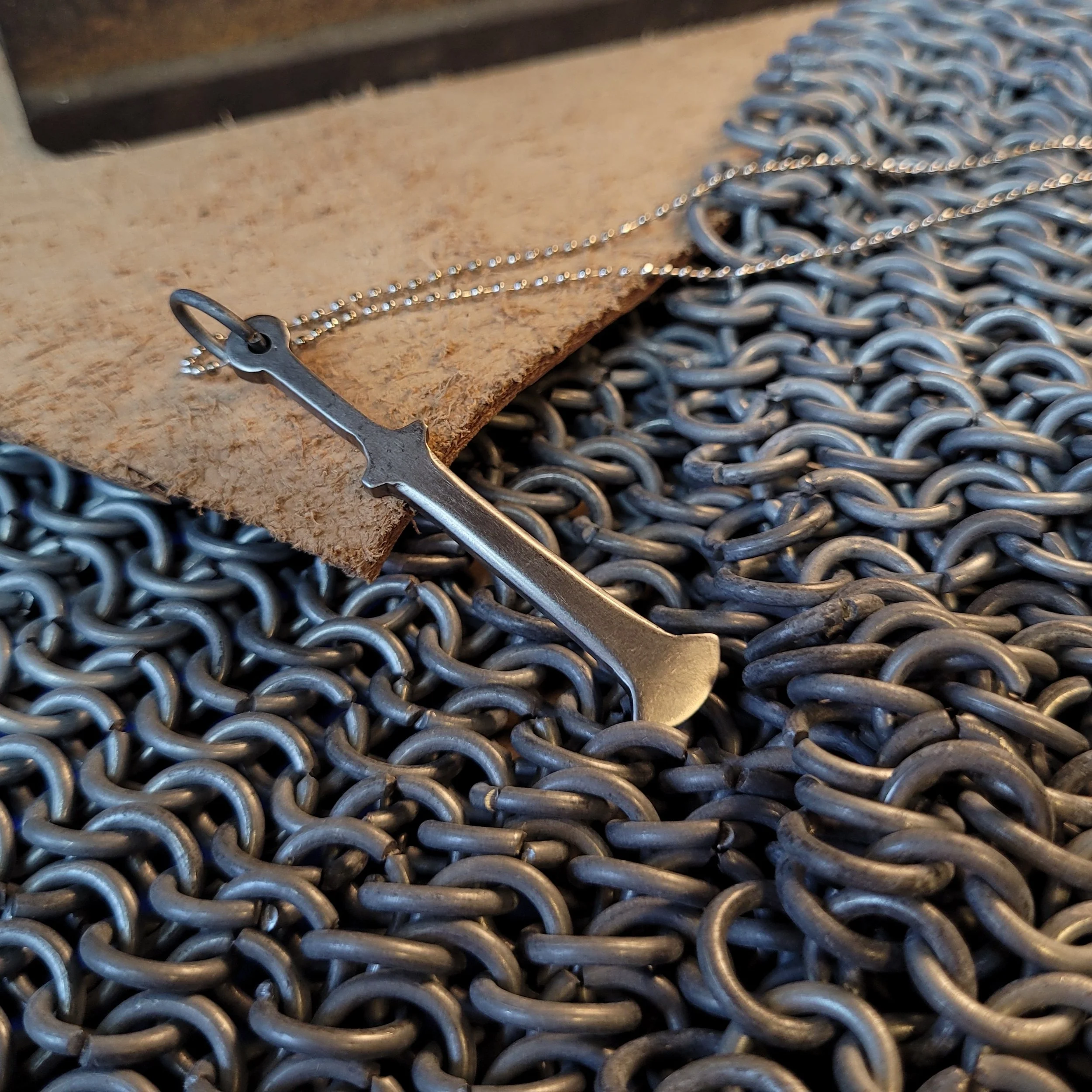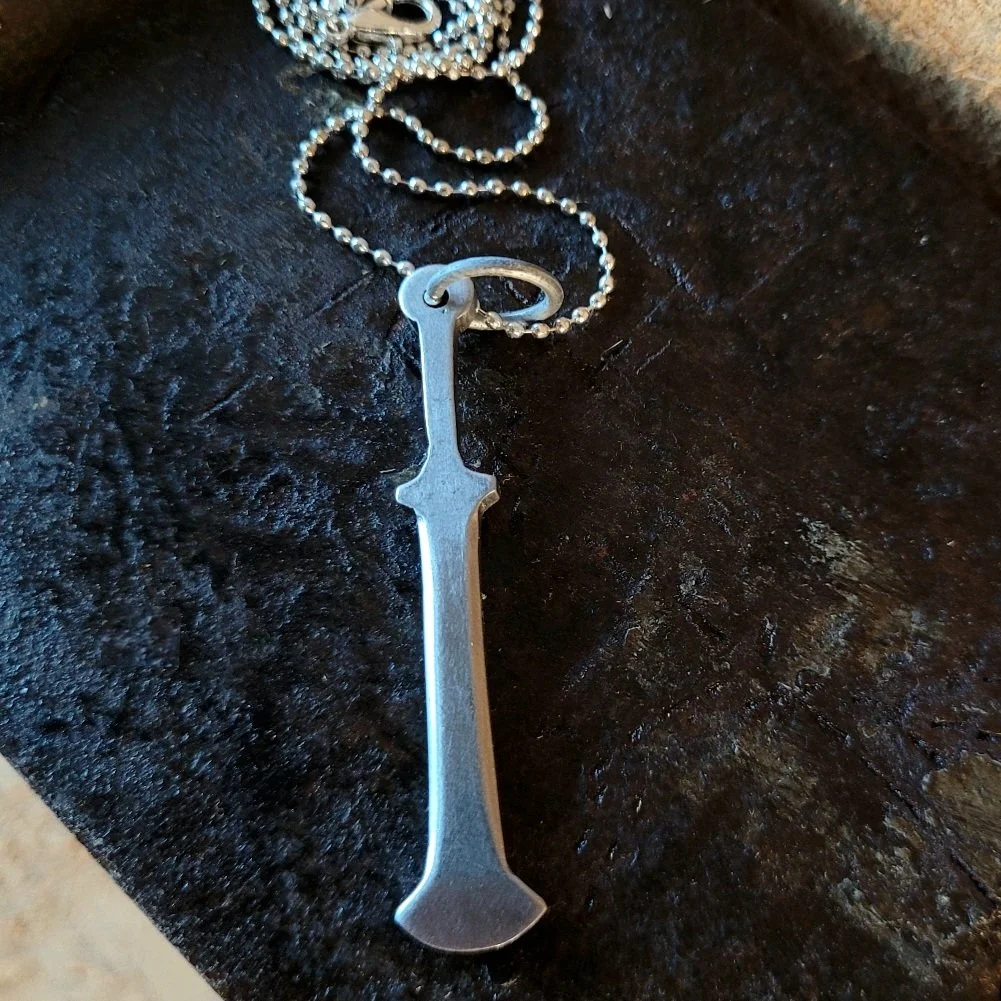 These pendants are loosly inspired by Ganondorf's sword from Legend of Zelda. Made from 15n20 or 1084 steel and measuring in at roughly 2 inches in length. Each may be slightly different from the photo due to being hand made.